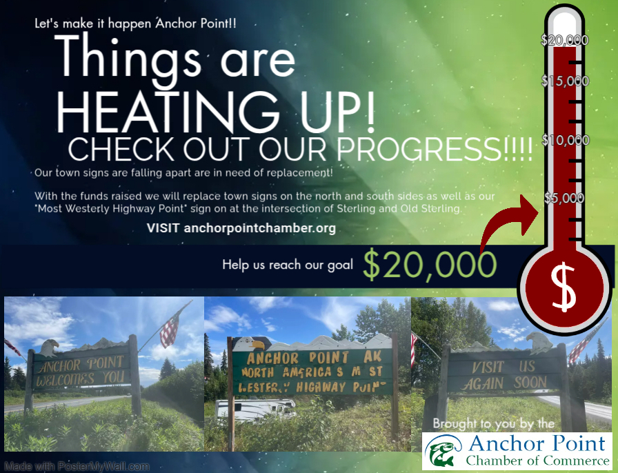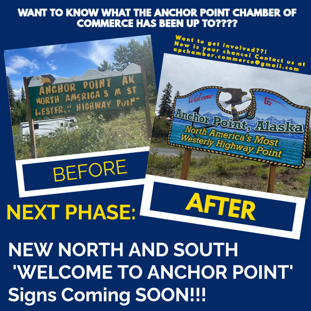 Anchor Point, North America’s Most Westerly Highway Point, is a destination choice of visitors from around the world. Year around recreational opportunities abound from river and saltwater fishing, camping, and hiking opportunities in the summer to snow machining, cross country skiing, and nearby ice fishing in winter contributing to its nickname of the fun capital of the Kenai.